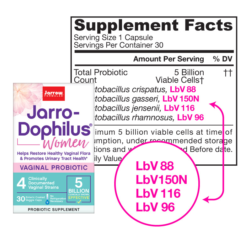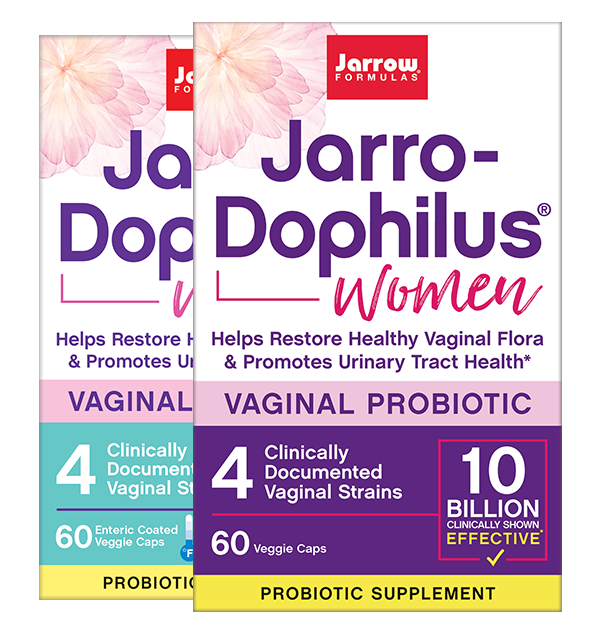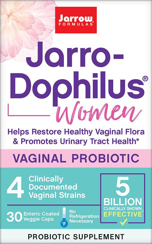 A unique probiotic formula containing four proven strains of the predominant vaginal Lactobacilli, Jarro-Dophilus® Women’s patented combination of probiotic microorganisms has been clinically tested for efficacy in maintaining protective vaginal flora and promoting urinary tract health.* Healthy vaginal flora provides important support for full-term pregnancy.* Jarro-Dophilus® Women’s potency is based on clinical studies of 5 to 10 Billion per capsule.